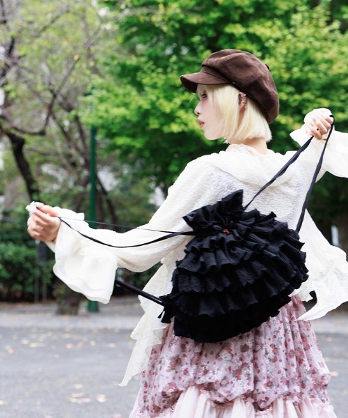【アイテム説明】 フリルをたっぷり重ねた、存在感抜群のバックパック。背負っただけで華やかな雰囲気をプラスしてくれるアイテムです。 【デザイン】 柔らかな生地に繊細なフリルとレースを重ねた贅沢な仕上がり。 ギャザーの立体感がふんわりとしたボリュームを生み出し、甘さたっぷりのデザインに。 ローズモチーフでさりげないポイントをプラスしています。巾着タイプで見た目以上の容量の多さも魅力です。 【コーディネート】 ワンピースやチュニックなどガーリーなアイテムと合わせて甘さを楽しむのはもちろん、デニムやゆるっとしたストリートスタイルに合わせて、ミックス感を出すのもおすすめ。 お出かけやイベントで、周りと差のつく個性派コーデを叶えてくれます。 ▽ axes femme * アクシーズファム 【Concept】 axes femmeのお洋服であなたのライフスタイルに ほんの少しだけ彩る花が咲きますように。 ブランドを通して、彩る花たちが、 人と人、お客様や作り手たちの想いが世界中に繋がっていきますように。 ベル・エポック(フランスの古き良き時代)にパリジェンヌたちが愛したファッションや文化にルーツをおき、 独自のフェミニンスタイルを楽しむブランド #レイヤード #アースカラー #ダスティカラー #ナチュラル #レース #Y2K #バレエコア #森ガール #平成 #グランジ #ネオ森ガール #NEO森ガール ********************** .。.: お気に入り登録のおすすめ :.。. ∇気になるアイテムを登録∇ ハートをクリックしてお気に入りに登録すると 完売カラーの再入荷やラスト1点の通知、セールの通知を受けとることができます。 ∇ブランドを登録∇ 新商品や再入荷、セール通知など、いち早くブランドの情報を受けとることができます。 是非ご利用頂き、お買い物をお楽しみ下さい。 .。.: 商品について :.。. ・サイト上のカラー名と、お届け商品に記載されているカラー名が異なる場合がございます。 ・商品の色味は、撮影場所や光のあたり具合、お客様のお使いのPCのモニター環境などにより色味が違って見える場合がございます。 予めご了承の上ご注文下さい。 .。.: 返品・キャンセルについて :.。. ・着用、洗濯後の返品は致かねます。 ・商品到着後、着用前に商品を確認して頂きますようお願い致します。