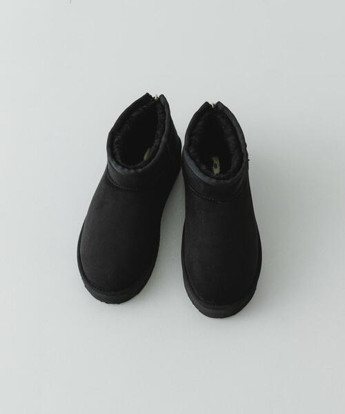 雨の日も品よく温かく、撥水厚底ムートンブーツ 【Design】 撥水加工を施したムートンブーツは、悪天候の日でも安心。厚底ながらフラット仕様で歩きやすく、驚くほど軽い仕上がりです。内側はフラッフィー素材で包み込むような温かさを実現。かかとにジップが付いているので、脱ぎ履きもスムーズです。 【Styling point】 シンプルで洗練されたデザインは、カジュアルスタイルだけでなく、スカートやワンピースと合わせた大人のきれいめスタイルにもマッチ。足元に程よいボリュームを加え、トレンド感と上品さを両立してくれます。 【2025 Autumn/Winter】【25AW】 ※サイズ詳細は、当社が独自で計測したサイズです。予めご了承ください。 ※靴箱破損につきましては、商品に不良が無い場合に限り出荷させていただいております。予めご了承ください。 総重量 : 約180g ※商品画像は、光の当たり具合やパソコンなどの閲覧環境により、実際の色味と異なって見える場合がございます。予めご了承ください。 ※商品の色味の目安は、商品単体の画像をご参照ください。 ▼お気に入り登録のおすすめ▼ お気に入り登録された商品は、マイページにて現在の価格情報や在庫状況の確認が可能です。 お買い物リストの管理にぜひご利用ください。 38393736