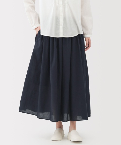 やわらかな風合いで、軽やかな着心地が特長のスカートです。綿はオーガニックコットンです。 【素材】 やわらかな風合いで軽やかな着心地の綿ボイル生地を使用しています。薄手なので暑い時期から快適に着ることができます。 【デザイン】 ウエストには細かなギャザーを施し、生地にボリューム感を持たせながら、すっきりとしたシルエットに仕上げました。ブラウスとスカートはセットアップとして着用できるデザインです。ウエストは総ゴム仕様で、紐でサイズ調整が可能です。 【仕様】 透け感:なし(裏地付き) 伸縮性:なし 【こちららもおすすめ】 同素材の「綿ボイル長袖ブラウス」・「綿ボイル長袖ワンピース」・「綿ボイルインディゴ染め長袖ワンピース」もおすすめです。 お取扱い上のご注意 : ●濃色製品は使用中の摩擦や濡れた状態での接触により色移りする事があります。 ●洗濯の際は他のものと分けて洗ってください。洗濯後は放置せずにすぐに干してください。●洗濯やクリーニングにより徐々に色あせします。●素材の特性上、織ムラ、糸節、多少の色差があります。 お洗濯上のご注意 : ●淡色製品には蛍光増白剤入り洗剤を使用しないでください。 お洗濯上のご注意2 : ●洗濯ネットをご使用ください。