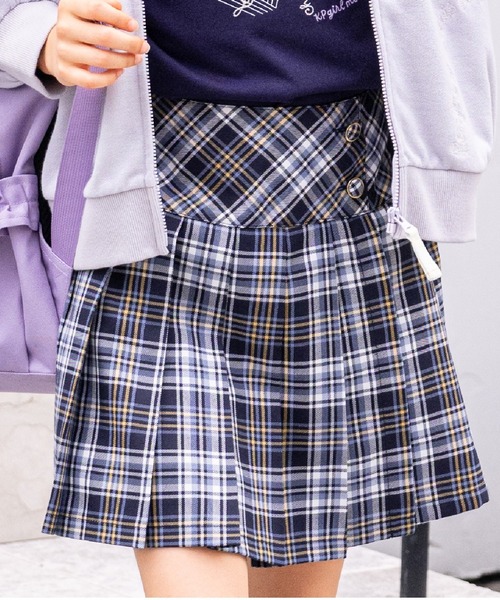ガーリーなトラッドテイストのチェックを使ったラップキュロットです。動きやすさはキュロットならではですが、プリーツの入った見た目は上品な着こなしにもぴったりです。後ろウェストはゴムになっているので、着脱もしやすい仕様です。