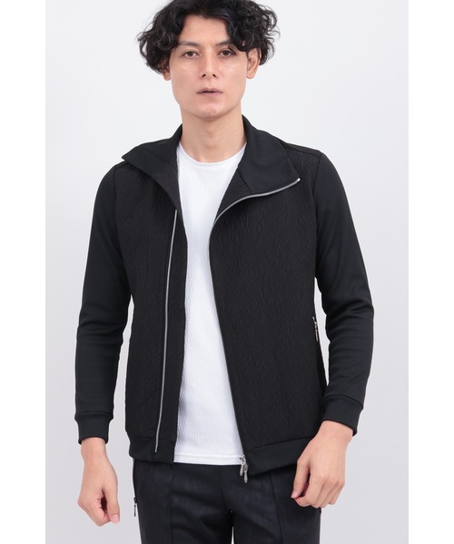 [DESIGN] 異素材の緊張感と美しさをアシンメトリーデザインで一つに融合させた、TORNADO MARTの真骨頂とも言えるトラックジャケット。 メインファブリックには、変形ゼブラ柄を立体的に浮かび上がらせたフクレジャカードを採用。視覚的インパクトと上品な陰影が、静かなインパクトを生み出します。そこに、艶やかな光沢とドレープ感が際立つシルキーリブジャージーを袖や衿、裾パーツに配置し、しなやかな動きをプラス。さらに、肩や脇ラインには、クリアでコンパクトなタッチのハイゲージジャージーをドッキング。高密度な表面感が全体を引き締め、素材間のコントラストをより鮮明に印象づけます。 計算されたカッティングとアシンメトリーな切り替えが、スポーティでありながらアヴァンギャルドな印象を演出。ファッション性と機能性を兼ね備えた、現代の“ラウンジ・エレガンス”を象徴する一着です。 [TEXTILE] 変形ゼブラ柄を立体的に表現したフクレジャカードに、滑らかな光沢感を放つシルキーリブジャージー、そしてハイゲージで編み立てたコンパクトジャージーをドッキング。3種の異なる質感と表情が交錯することで、モードな存在感と快適な着用感を両立。動きに呼応して陰影が揺らぎ、スタイルに深みを与える素材使いです。