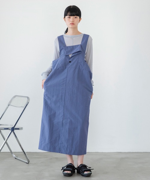 SNEEUW 2026 SPRING & SUMMER フロントのスリットとベルトのディティールが作るジグザグなフォルムがポイントのジャンパースカート。 ベルトは二通りにたためて、印象を変えることが可能です。 風合い良くしなやかな質感に加工したコットンナイロン素材でできています。撥水加工が施されていて雨の日も安心です。 両サイドにポケットも備え、利便性も高めました。 フロントの裾にスリットが入っていて動きやすさもプラスしています。 Kanon Hara H165cm 着用サイズONESIZE Serena Yarimizu H170cm 着用サイズONESIZE SNEEUW 2026 SPRING & SUMMER 心を動かされた展示、映画の中で取り上げられていたのは「目に見えない」こと。 気づいたのは、目に見えないことは特別ではなくて世の中は目に見えないもので溢れていたこと。 心に訴えかけてくる音楽、清々しい山の空気、愛らしいインコの気配、身体を癒してくれる水の味。 隠れたり、見えたり、ひっくり返ったり、そんな目に見えない仕掛けと、着るとわかるアップデートでいっぱいのコレクションです。 ANLIO OFFICIAL、ZOZOTOWN にて在庫発売いたします。 ANLIO OFFICIAL→会員10%割引 ZOZOTOWN →paypay、ZOZOポイント 各ショップによりサービス内容が異なります