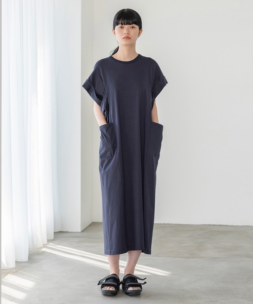 SNEEUW 2026 SPRING & SUMMER 折り返りつつぐるっと一周した独特なシルエットの袖がポイントのワンピース。 シンプルでさらっと着ていただけて、フォルムの面白さが映える一着です。 両サイドにポケットも備え、ちょっとしたおでかけにも安心。 肌当たりの良いしっとりしたなめらかなタッチの程よい厚みのある天竺生地で出来ていています。 Kanon Hara H165cm 着用サイズONESIZE Serena Yarimizu H170cm 着用サイズONESIZE SNEEUW 2026 SPRING & SUMMER 心を動かされた展示、映画の中で取り上げられていたのは「目に見えない」こと。 気づいたのは、目に見えないことは特別ではなくて世の中は目に見えないもので溢れていたこと。 心に訴えかけてくる音楽、清々しい山の空気、愛らしいインコの気配、身体を癒してくれる水の味。 隠れたり、見えたり、ひっくり返ったり、そんな目に見えない仕掛けと、着るとわかるアップデートでいっぱいのコレクションです。 ANLIO OFFICIAL、ZOZOTOWN にて在庫発売いたします。 ANLIO OFFICIAL→会員10%割引 ZOZOTOWN →paypay、ZOZOポイント 各ショップによりサービス内容が異なります