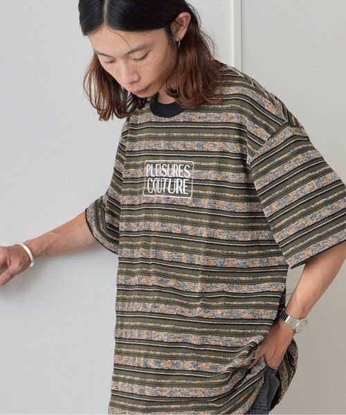 肌触りが良く着心地抜群の異素材切替Tシャツ。●フロント部分にはボックスロゴ風のデザインが 刺繍されています。●上質なタオルの様に柔らかな生地とニットの 生地が交互に連なりボーダー柄を表現。●アイテムの第一印象とは裏腹に、着ているだけで 心地よさを感じるTシャツに仕上がりました。●首元はバインダーネック仕様で、首部分の伸びや へたれを軽減してくれる堅牢な縫製方法です、●ややゆとりのあるワイドシルエットで、リラックス感を 演出できます。♦おすすめコーディネートフロッキーデニムやカーゴパンツなどのストリートテイストなアイテムにもマッチします。ギンガムチャックシャツやジャケットなどのインナーとしてもおすすめです。ナップサックやキャップなどの小物と合わせても◎■素材ポリエステル75%,コットン25%■メーカー品番P25F040【PLEASURES / プレジャーズ】 「PLEASURES」は、ロサンゼルス発の新鋭ファッションブランド。LAのストリートシーンを牽引するデザイナー”Alex James”が発信。自身が最も影響を受けた90年代のアートや、ミュージック等のカルチャーからインスパイアされたグラフィックや、タイポグラフィーを用いたアイテムが特徴。近年では、様々なアーティストやオンラインマガジンHYPEBEASTとのコラボレーション等、現在注目が集まっている。【ROOPTOKYO ZOZOTOWN お買い物ガイド】▼ ♥マークをタップで商品をお気に入り登録!完売商品の再入荷やラスト1点の通知、セール開始時にお知らせ!▼"ROOPTOKYO(ループトーキョー)"をお気に入りブランドに登録!新商品や再入荷など、ブランド最新情報をいち早くお知らせ!是非、ご活用いただきお買い物をお楽しみください!