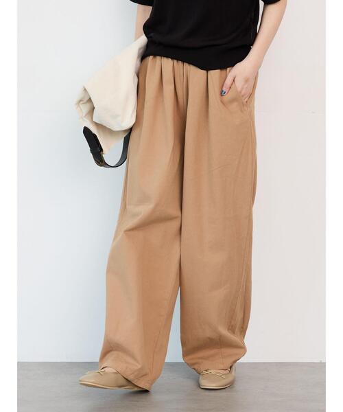 緩やかにカーブするコクーンシルエットで、トレンドライクに仕上げたイージーパンツ。ウエストはゴム仕様で締めつけ感もなく、リラックスした穿き心地が魅力的。気分やコーデで選べる、ワンカラーからストライブ柄を展開し、様々なトップスでコーデを遊べる万能アイテムです。※商品画像は、撮影環境やお客様のご利用のPC・スマートフォンのモニター環境などにより実物と色味に差異がある場合がございます。【その他採寸】F ウエスト:[ゴム仕様]56cm