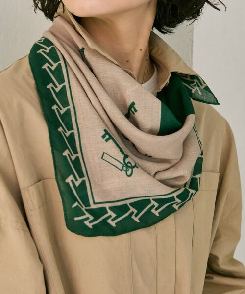 鍵モチーフが印象的なストール。リング付きでアレンジが簡単なのも嬉しいポイント。首元に巻けば、シンプルなトップスもトレンド感のあるスタイルに。落ち着いたカラーリングで、カジュアルからきれいめまで、様々なコーディネートに合わせやすいアイテムです。■サイズ追記リング:縦3.7×横3.0