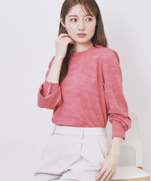フラワージャカードの凹凸感が素敵なパフスリーブトップス 【デザイン】 ・フラワージャカードの立体的なデザインが、華やかさと上品さを演出します。 ・パフスリーブが女性らしさを引き立て、柔らかなシルエットを実現。 ・小さめのスタンドネックのシンプルなラインが、どんなスタイルにも合わせやすい。 ・袖口にはさりげないパール調のボタンディテールが施され、アクセントとなっています。 ・シンプルなデザインが、全体のバランスを整え、洗練された印象を与えます。 ・一枚着でも映え、カーディガンやジャンスカワンピースなど、レイヤードアイテムとしても着回していただけます。 【素材】 ・柔らかな生地を使用し、快適な着心地を実現。 ・ストレッチの効いた素材感が、身体の動きに程良くフィットします。 ・洗濯機でのお手入れが可能で、日常使いに最適なアイテム。 ※照明の関係により、実際よりも色味が違って見える場合があります。また、パソコン・スマートフォンなどの環境により、若干製品と画像のカラーが異なる場合もございます。 モデル情報:身長163cm B81 W56 H82 着用サイズ:38(M) 店舗へのお問い合わせ商品番号:C58-14207 ●製品寸法: 36(S):着丈49cm B84cm 袖丈56cm 肩幅30cm 38(M):着丈59cm B87cm 袖丈57cm 肩幅32cm 40(L):着丈51cm B90cm 袖丈58cm 肩幅34cm 42(LL):着丈52cm B94cm 袖丈59cm 肩幅35cm 備考: