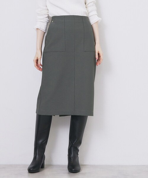 C58-14206とセットアップでも着用頂けます。繊細なラメがきらめく多機能ポンチタイトスカート【デザイン】・ラメが施されたポンチ素材が、華やかさと上品さを演出します。・タイトなシルエットが女性らしいラインを強調し、スタイルアップ効果を実現。・フロントのポケットデザインが、機能性とデザイン性を両立。・ウエスト部分はゴム仕様で、快適なフィット感を提供します。・シンプルながらも存在感のあるデザインで、さまざまなコーディネートに対応。【素材】・ストレッチ性のあるポンチ素材が、動きやすさと快適さを実現。・肌触りが良く、長時間の着用でもストレスを感じさせません。・洗濯機での洗濯が可能で、防シワ・抗ピル機能が日常使いにおすすめです。【仕様】・ポケット数:横×2・ウエスト後ろゴム・裏地なし※こちらの商品はやや透け感があるため、インナーの着用をおすすめします。※照明の関係により、実際よりも色味が違って見える場合があります。また、パソコン・スマートフォンなどの環境により、若干製品と画像のカラーが異なる場合もございます。モデル情報:身長166cm B80 W62 H86 着用サイズ:38(M)店舗へのお問い合わせ商品番号:C58-74013●製品寸法:36(S):W60~64cm H82cm 総丈66cm38(M):W63~67cm H84cm 総丈67cm40(L):W66~70cm H86cm 総丈68cm42(LL):W69~73cm H89cm 総丈69cm44(3L):W72~76cm H92cm 総丈70cm備考: