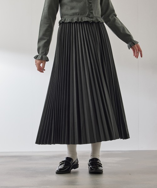 ●POINTリアルに近い質感やタッチにこだわった、非常に柔らかく、肌触りが良いシープレザーのような合皮素材を使用しています。滑らかで軽やかな素材なので、分量感のでるプリーツ加工を施しても重さが気になりにくいのが魅力です。ウエストはぐるりゴム使用でストレスの感じにくい着用感に。気温に左右されにくいので、気温が高い日にはTシャツ合わせで、秋めいた気温感の日にはジャケットなどを合わせていただいて、季節感をいち早く感じられる一枚です。同素材を使用したアイテムに、シープナッパ調ステンカラージャケット(2205-56066)がございます。----------------------------------透け感:なし厚さ: やや厚い伸縮性:あり裏地: なしポケット: なし--------------------------------------------------------------------------------------------------洗濯方法家庭洗濯:家庭での洗濯禁止。アイロン:アイロン仕上げ禁止。ドライクリーニング:石油系溶剤による弱いドライクリーニングができる。----------------------------------------------------------------■モデル身長 165cm 着用サイズ M※画像の商品はサンプルとなりますので実際の商品と仕様、加工、サイズが若干異なる場合がございます。※お客様のモニター環境により実際のお色と多少異なる場合がございます。※撮影状況や光の当たり具合により、色合いが異なって見える場合がございます。----------------------------------▼商品のお気に入り登録ハートマークをクリックし、お好きなカラーを選んでお気に入りに登録完売カラーの再入荷通知や、ラスト1点の通知、セールの通知も受け取ることができます。▼ブランドのお気に入り登録新商品や再入荷等、いち早くブランドのお得な情報を受け取ることができます。----------------------------------