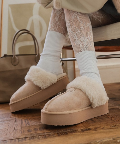 おしゃれも防寒も叶えてくれる厚底ムートンサンダル。足をしっかりとホールドするバックバンドは取り外し可能な2way仕様。 サンダル感覚で履ける手軽さで近所ちょっとしたお出かけから旅行まで幅広いシーンで活躍します。 【素材・サイズ感】 S-LLの4サイズ展開。ふわふわのファーボアが足をやさしく包み込みリラックス感のある履き心地を実現。 ボリューム感が可愛い厚底ソールながら軽くて歩きやすくデイリー使いに活躍しくれる定番の一足です。 【STAFFコメント】 厚底ソールで美脚見え&脚長効果抜群のショートブーツ。 あたたかいフワフワもこもこムートンで秋冬も快適に過ごせます。 フラットソールなので疲れにくく、ストレスフリーな履き心地◎ シンプルデザインなのでコーデを選ばずデイリーに使えます。 軽量設計なのも嬉しいポイント♪ 歩きやすいだけでなく、サボサンダルデザインで足元までおしゃれ見えするベーシックデザインのファーブーツです。 《KOBE LETTUCE ー神戸レタスー》 プチプラレディースファッションからコスメまで、トレンドアイテムを豊富に取り揃えております。 毎シーズン発売されるインフルエンサーとのコラボ商品はSNSでも話題に。