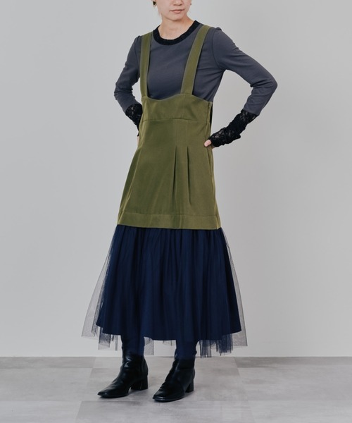 -25AW|DOLLUPOOPS- レイヤード自在。春まで使えるデザインジャンスカ。 【Material】 チノライクのポリエステル生地を使用。 柔らかめの素材でありながらも耐久性に優れた素材です。 【Design】 ジャンパースカートにチュールをドッキングさせたデザイン。 背面にはギャザーでフロントにはタックと立体感のある仕上がりです。 【Size】 ゆったりとした台形シルエット。肩紐で長さの調節が可能です。 【Styling point】 Tシャツやニットでカジュアルに合わせるのがおすすめ。 肌寒さの残る時期は薄手のスプリングニットなどが◎。 ___________________________ ★商品のお気に入り登録 完売カラーの再入荷通知や、ラスト1点の通知、セールの通知も受け取ることができます。 是非ブランドの”お気に入り登録”もご一緒にお願い致します!!! ※画像の商品は光の反射や角度により、実物と色味が異なる場合がございます。 また、表示のサイズ感と実物は若干異なる場合もございますので、予めご了承ください。 ※着用、お取り扱いの際は、商品についている品質表示とアテンションタグを必ずご確認ください。 -DOLLUPOOPS | ドールアップウップス- 【Add a little essence】ライフスタイルの多様化が進む現代変わり続ける今をとらえ、 自分らしい感性を大切にする女性に向けて " より美しく" 毎日を" 彩る" ワードローブを。 日常に調和しつつ、" 普通 " に少しだけエッセンスをたして、他にない特別な一品を提案します。 -Instagram- 公式インスタグラム【dollupoops.tevalt_official】 ※商品のサイズ感やご質問は【dollupoops.tevalt_official】のインスタアカウントDMにて承っております。 お気軽にご相談くださいませ。