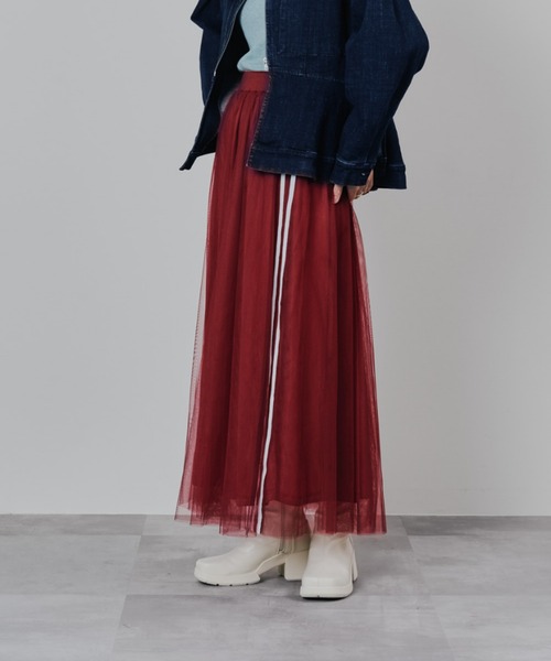 -25AW|DOLLUPOOPS- エアリーな質感で、カジュアルにも映える新バランスなスカート 【Material】 軽く空気を纏ったかのようなチュール素材を使用。落ち感やドレープに期待できる生地感です。 【Design】 シンプルなチュールスカートにサイドラインをデザインした遊び心ある一着。 裾に向かって広がるフレアシルエットが女性らしさを引き立て、動くたびに軽やかな揺れ感を生み出します。 【Size】 ウエスト部分は総ゴムが入っていて楽な着心地。 【Styling point】 ライダースジャケットやロゴTシャツなどのカジュアルアイテムと合わせると、甘さが抑えられ、こなれた印象に。 シンプルなニットやブラウスと合わせれば、上品さの中にトレンド感をプラスできます。 【スタッフレビュー】 身長:150cm/普段サイズ:M/着用サイズ:38 着丈はウエスト位置で着用して足首までかかる長さですが、チュールなので低身長でも重たさが出にくいバランスです。 ふわっとしたエアリー感もありますが、サイドラインのデザインでカジュアルなコーデにに落とし込めるのが◎ ____________________________ ★商品のお気に入り登録 完売カラーの再入荷通知や、ラスト1点の通知、セールの通知も受け取ることができます。 是非ブランドの”お気に入り登録”もご一緒にお願いいたします。 ※画像の商品は光の反射や角度により、実物と色味が異なる場合がございます。 また、表示のサイズ感と実物は若干異なる場合もございますので、予めご了承ください。 ※着用、お取り扱いの際は、商品についている品質表示とアテンションタグを必ずご確認ください。 -DOLLUPOOPS | ドールアップウップス- 【Add a little essence】ライフスタイルの多様化が進む現代変わり続ける今をとらえ、 自分らしい感性を大切にする女性に向けて " より美しく" 毎日を" 彩る" ワードローブを。 日常に調和しつつ、" 普通 " に少しだけエッセンスをたして、他にない特別な一品を提案します。 -Instagram- 公式インスタグラム【dollupoops.tevalt_official】 ※商品のサイズ感やご質問は【dollupoops.tevalt_official】のインスタアカウントDMにて承っております。 お気軽にご相談くださいませ。