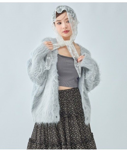 羽織るだけでこなれ感。ファーのような毛足のカーデは、合わせるテイストを選ばない。【おすすめポイント】・長い毛足が存在感大のシャギーニット。シンプルで合わせやすいカーディガン。・デニムなどボーイッシュなスタイルにも、ワンピースなどガーリーなアイテムにも好相性。【こんな人、こんな時に】・トレンド感もプラスできる、暖かい羽織りものとして・ゆったりめのサイズ感で、体型カバーにも【デザイン】・深くあいたVネックで、前ボタンどめ・全体的にゆとりがあり、ヒップを半分くらい隠す丈・やや太めでリラックス感のある長袖【素材】・凹凸感のあるブークレ糸に起毛加工を施した、束感のある長い毛足のシャギーニット・ふわふわと柔らかな肌ざわりで、軽く暖かい着心地モデルサイズ:①160cm ②165cm着用サイズ:ワンサイズ