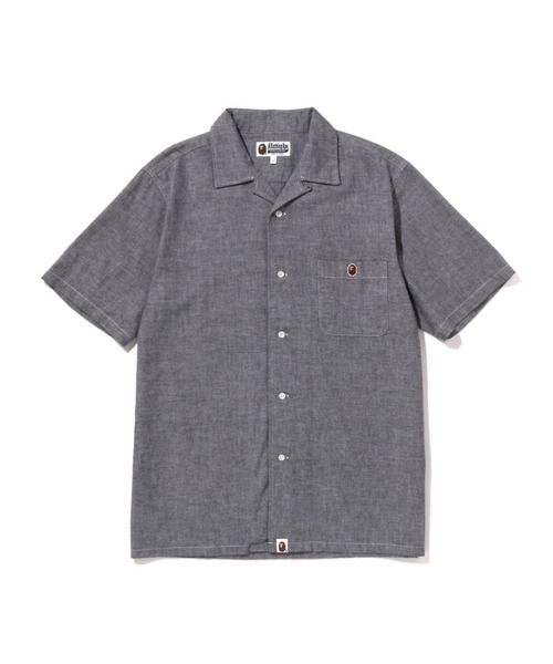 コットン素材のシャンブレー生地を使用したショートスリーブシャツ。左胸にパッチポケット、ポケット縁にAPE HEADのワッペンを叩きつけ、裾はラウンドカット仕様のデザイン。背面ヨーク部分にタックを配置。レギュラーフィットシルエット。
