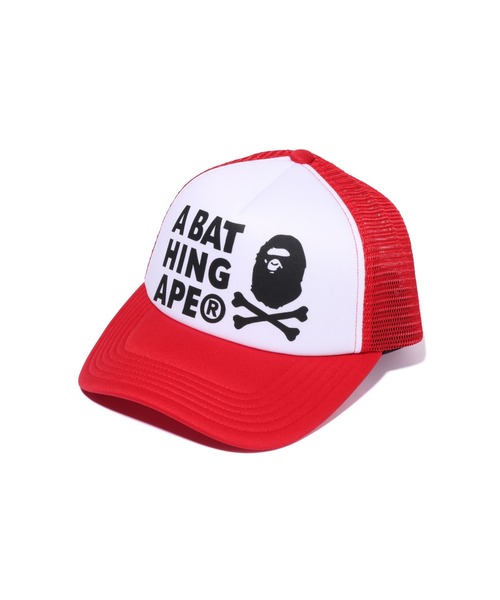 APE CROSSBONE ロゴをプリントしたメッシュキャップ。 メッシュ部分は通気性が非常に高く、頭が蒸れにくくなっているのも特徴。アジャスター付きなのでサイズ調整が可能。 PIRATE STOREオリジナルアイテム。