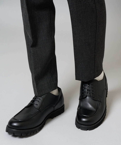 合成皮革を使用した軽量なモカシンデザインのシューズです。軽量のためスニーカー感覚で着用頂けます。 オーセンティックなUチップのアッパーデザインで上品に見えることからビジネスシーンでも着用頂けます。ソールも含めてオールブラックカラーで合わせるボトムを選ばず足元を引き締まった印象に仕上げてくれます。 スラックスからワイドパンツまたはデニムまでオンオフ兼用でご使用頂けます