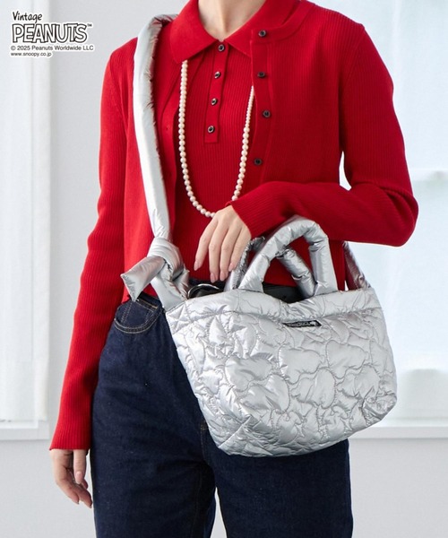 PEANUTSデザインがROOTOTEになりました。 オトナも楽しんでいただけるこだわりのデザイン。 キルティングのパターンがスヌーピーのシルエット! ふかふかモチモチのショルダーストラップもポイントです。 メインにもサブにも使いやすい「デリ」。 スマホ、長財布、ボトル、A5ノートなどが収納可能。 少し横長なシルエットも今の気分♪ 軽くて体に添う柔らかさがありながら、しっかり自立。 ドットボタン開閉の口元も大きく開くから、モノの出し入れがスムーズに行えます。 内ポケットに付いたROOTOTEオリジナル織りネームもうれしいポイント。 中をのぞくたびにかわいい。 両手フリーでアクティブに。 トートバッグ&ショルダーバッグの2way仕様。 ふかふかモチモチのショルダーは、結んで長さ調節が可能。 コロンとした結び目もアクセント。 背面のルーポケットには、サッと取り出したいスマホなどを入れておけるので便利です。 シャイニーなブラック&シルバーと、シワ加工で風合いのあるマットなブラック&ベージュ。お好みの質感をセレクトしていただけます。 クールな配色にぷっくりスヌーピーのシルエット。 ボリュームのあるハンドルやショルダーを合わせることで、遊び心のある大人も楽しめるトートバッグに仕上がりました。 ■同シリーズの手のひらサイズ「べビールー」、A4収納可能「ミディアム」もございます。併せてご覧くださいませ。 品番「8451」 01:ブラック系1 / シャイニーブラック 02:シルバー / シャイニーシルバー 03:ブラック系3 / マットブラック 04:ベージュ サイズ:W約(上部)33(下部)23×H18.5×D13cm 持ち手26cm ショルダー最長時130cm 重量:約160g ポケット:外側1箇所 / 内側1箇所 コミック「ピーナッツ」は1950年10月2日にアメリカの7紙で連載をスタート。以来ポップアイコンとして、常にカルチャーシーンに影響を与え続けています。 ROOTOTEでは1950年から1979年のコミックのヴィンテージアートを使用。懐かしくて愛らしいキャラクター達が普段のお出かけをもっと楽しくしてくれます。 © 2025 Peanuts Worldwide LLC