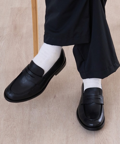 BICASH レザー コインローファー (008) BICASHでは定番人気のモデル コインローファー 艶感のある牛革を贅沢に使用。 履き込む程により経年変化を楽しんで長く愛用していただけます。 バングラデシュの自社工場で熟練した職人がハンドメイドにて一貫生産。 レザーソールに補強のラバーを貼り合わせマッケイ製法にて仕上げてあります。 ローファーはコーディネートに取り入れるだけでこなれ感のある印象をプラス。 プレーンなデザインは様々なスタイルに馴染み、シーズンやシーンを問わずご愛用頂けます。 トゥはややスマートなフォルムになっており、カジュアルになりすぎず、上品できちんと感を両立。 マッケイ製法とは? 甲革、中底、本底をまとめて直接縫い付ける製法で、軽量かつ屈曲性が高く、足に馴染みやすいのが特徴。 BICASHのレザーシューズは他展開モデルもお取り扱いございます。 BICASH イタリアン ミリタリー レザーシューズ(131)(PR0_BH131_i) BICASH レザー 内羽根レースアップシューズ (120)(PR0_BH120_i) BICASH レザー 外羽根レースアップシューズ (136)(PR0_BH136_i) ※商品を受け取ってから8日以上が経った商品、ブランドタグや梱包を失くされた商品、また、着用感が見られる商品は返品交換を受け付けられないことがございます。予めご了承くださいませ。 【BICASH /ビカーシ】 2011年にスタートしたRAYAN LIMITEDのオリジナルレ-ベル。シュ-ズ、バッグ、レザ-グッズのデザインを東京のデザインチ-ムが行い、バングラデシュの自社工場で熟練した職人がハンドメイドにて一貫生産しております。レザ-の産地として名高いバングラデシュのトップタンナ-へBICASHオリジナルレザ-を別注し、ベ-シックな定番モデルやシーズンセレクトモデルを展開しております。
