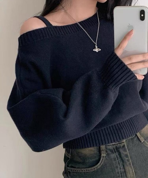ワンショルダーで魅せる大人の魅力!ワンショルダーニットトップス【デザイン】ワンショルダーの大胆なカッティングが印象的なニットトップス。アシンメトリーなシルエットがスタイリングに動きを加え、シンプルながら存在感のある一枚です。柔らかな質感で女性らしさとモードな雰囲気を兼ね備えています。【素材感】着心地が柔らかいアクリル素材伸縮性:あり/ 透け感:あり / 裏地:なし 手洗いによる洗濯可 / ドライ・ウェットクリーニング可【コーディネート】スラックスやデニムと合わせれば洗練された大人スタイルに!ミニスカートを合わせるとフェミニンな印象にも◎シーンに合わせた幅広い着こなしが楽しめます。肩見せデザインを活かしてアクセサリーを添えるのもおすすめです。【商品の特徴】・アシンメトリー・オフショル・ヘルシー肌魅せ・こなれ感・ゆるっと・肩出し・大人かわいい・華奢魅せ・肩ストラップ付き・シンプル・カジュアル・秋服・冬服【※お取り扱い上のご注意】1:モニター環境等により実際の商品と多少色味が異なって表示される場合がございます。予めご了承下さい。2:屋外で撮影された商品は、天候により多少実際のカラーと異なる場合があります。商品のカラーはトルソー(マネキン)の商品画像をご参照ください。3:濃い色の商品は、お洗濯や摩擦等による移染にご注意ください。4:末永くご愛用頂く為に、アテンションタグ・洗濯ネームを必ずご確認の上、着用又はお取り扱い下さい。5:生産時期により、色、サイズ、デザイン、素材の質感が多少が異なる場合がございます。あらかじめ御了承下さいませ。