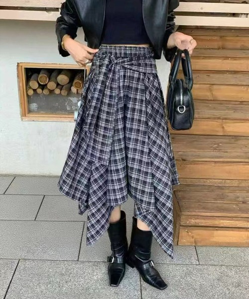アシメシルエットで韓国ガール見え!ワンショルダーニットトップス【デザイン】アシンメトリーなフリルシルエットが視線を惹きつけるチェック柄ロングスカート。動きのあるラインで脚長効果を演出し、ウエストリボンでバランスよく着こなせます。韓国ファッションらしい個性とスタイルアップを兼ね備えた1枚です。【素材感】着心地の軽いポリエステル素材伸縮性:あり/ 透け感:あり / 裏地:なし/ウエストゴム:あり 手洗いによる洗濯可 / ドライ・ウェットクリーニング可【コーディネート】クロップド丈トップスやスウェットと合わせてストリートライクに!ショートブーツをプラスすればモード感が高まります◎厚底スニーカーならカジュアルに振れる万能アイテム♪韓国っぽくオーバーサイズジャケットを羽織るのもおすすめです。【※お取り扱い上のご注意】1:モニター環境等により実際の商品と多少色味が異なって表示される場合がございます。予めご了承下さい。2:屋外で撮影された商品は、天候により多少実際のカラーと異なる場合があります。商品のカラーはトルソー(マネキン)の商品画像をご参照ください。3:濃い色の商品は、お洗濯や摩擦等による移染にご注意ください。4:末永くご愛用頂く為に、アテンションタグ・洗濯ネームを必ずご確認の上、着用又はお取り扱い下さい。5:生産時期により、色、サイズ、デザイン、素材の質感が多少が異なる場合がございます。あらかじめ御了承下さいませ。