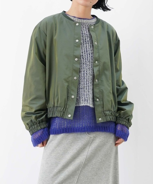 2025 Autumn & Winter 【色変化が楽しめるブルゾン】 ◆Design やわらかい風合いの玉虫生地を使用したブルゾン。 光の加減で玉虫の色変化が楽しめるデザインで、コーデにアクセントをプラスしてくれます。 コンパクトな着丈でコーデに取り入れやすく、軽量のため肌寒い時期のお出かけにも重宝します。 同素材のスカートとセットアップでの着用もオススメです。 ◆Fabric ・やわらかな風合いの玉虫生地 ◆color ・ベージュ、グリーンの2色展開です。 ◆Styling ・同素材のスカート(玉虫リブカーゴSK:325204009)とセットアップでオシャレに◎ ・ジャンスカやサロペットに羽織ってアウトドアMIXコーデに。 ・フレアスカートやワンピースなどのフェミニンなコーデのアクセントに。 -------------------------------- 生地の厚さ:中間 透け感:なし 伸縮性:あり 光沢感:あり 裏地:なし 洗濯:手洗い可 -------------------------------- 【お買い物をよりお楽しみいただくために】 〇商品のお気に入り登録 完売カラーの再入荷や、完売間近の通知、セールの通知を受けることができます。 〇ブランドのお気に入り登録 新商品や再入荷など、いち早くブランドのお得な情報を受け取ることができます。 【♡をクリック!ご登録お願いします!】