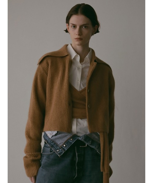 繊維が非常に細く表面が滑らかで肌触りの良いラクーン糸とウールの糸を使用した衿付きカーディガン。見た目以上に軽く、糸の中に空気を含むことで保温性が上がる特徴のある糸は長い冬場まで着用して頂けます。初秋は、タンクやTシャツの上に軽い羽織りとして…。温かさのある編地なので冬の間長く着用していただけます。トレンド感のある衿付きデザインが新鮮で、重くみえないスッキリとした着丈がどんなボトムとも相性良く合わせられます。同素材のカシュクールニットとセットアップで着用しても着こなしの幅が広がります。 ※画像の商品はサンプルです。実際の商品と色味、仕様、加工、サイズ、素材等が若干異なる場合がございます。 ※アイテムサイズは商品サンプルを採寸しているため、実際の商品と多少の誤差が生じる場合がございます。 ※末永く愛用頂く為に、アテンションタグ・洗濯ネームを必ずご確認の上、着用又はお取り扱い下さい。 ※HER.のネームタグは直接肌に触れる部分のため、お客様自身で取り外しがしやすいように軽い縫い付けの仕様となっております。取れやすくなっておりますが、不良ではございませんので予めご了承頂けますようお願い致します。 ・洗濯:手洗い可
