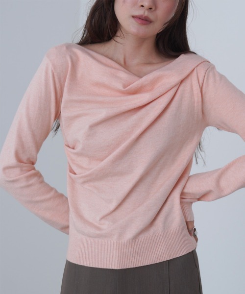 ●Bab● ■POINT 使いやすさ抜群のドレープトップスから長袖ニットが登場!シンプルながらも存在感を放つ、クロスデザインのドレープニットプルオーバー。全体的に入ったドレープが自然な立体感を生み出し、顔まわりをすっきりと見せてくれます。韓国テイストを感じる洗練されたシルエットで、1枚で着るだけでスタイルが完成するのも嬉しいポイント。ベーシックなアイボリー・チャコール・ブラウンに加え、柔らかくフェミニンな印象のピンクもラインナップ。カラーによって雰囲気が大きく変わり、幅広いシーンで活躍するアイテムです。シンプルなデザインだからこそ、アクセサリーや小物でアレンジを楽しめます。 ■FABRIC なめらかで心地よい肌触りが特徴。素肌に着てもチクチクせず、柔らかさと程よい厚みでデイリーに使いやすい質感です。伸縮性もあり、動きやすさと快適な着心地を兼ね備えています。 ■COORDINATE スラックスと合わせてオフィスカジュアルコーデに。サテンスカートと合わせるとドレープ部分とサテンの生地が合わさって上品な雰囲気になります。 ………………… 透け感:アイボリーのみややあり(同色系統のインナー着用をお勧めします) 裏地:なし ………………… ※撮影環境により、多少実際のカラーと異なる場合がございます。また、携帯やスマートフォン、パソコンなどの画面上と実物では多少色が異なって見える場合がございます。ご了承下さいませ。 ※画像の商品はサンプルのため、実際の商品と若干仕様が異なる場合がございます。 ※濃色品は、過度な摩擦や濡れた状態での摩擦により、色落ち・色移りをする恐れがあります。 ※この商品は、素材の特性上、洗濯の際に多少の縮みが生じる恐れがあります。洗濯後は形を整えてから干してください。 ※その他お取り扱いに関しましては、商品に付属のアテンションタグをご覧ください。 ★商品のお気に入り登録 再入荷やラスト1点のお知らせ、セール情報などお知らせを受け取ることができます! ★ブランドのお気に入り登録 新商品や再入荷などのお得な情報を受け取ることができますので、是非ご登録ください。 ★Bab公式Instagramアカウント【bab.showroom】で最新情報をチェック!