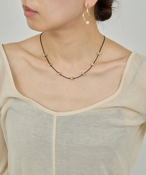 モダンな印象を与えるコードネックレス●控えめながらも目を惹くモダンな印象のメタルパーツ。●後ろで長さ調節ができ、お好みのバランスで着用可能。●機能面だけでなくバックシャンな印象も叶えるアジャスターデザイン。●スタイリングにメリハリ感がつく、シーズンレスに活躍する1アイテム。※画像の商品はサンプルです。実際の商品と仕様、加工などが若干異なる場合があります。また、生産過程上の都合により、洗濯表記や混率、サイズスペック等が多少変更になる可能性がございます。予めご了承ください。※トップの画像は、光の具合で色味が違って見える場合があります。◆気になる商品は「お気に入り」登録を◆ハートマークをクリックし、お好きなカラーを選んでお気に入りに登録すると入荷情報や残り1点の通知、完売カラーの再入荷、セール情報などを受け取ることができます。