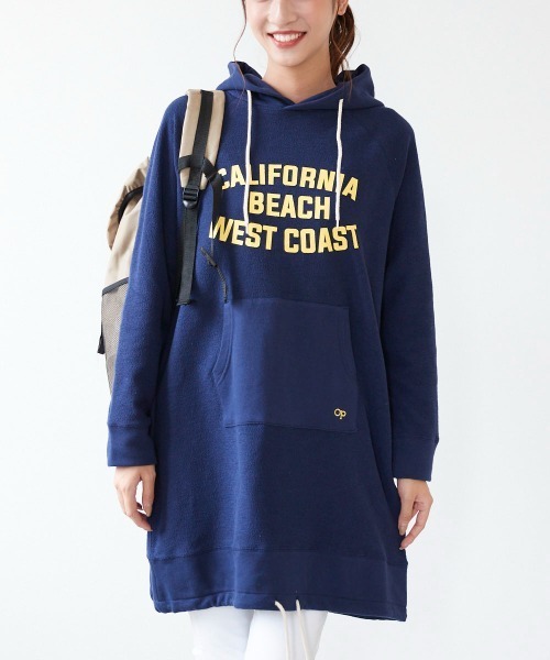 【OP / オーピー】レディースパーカーワンピース/裏毛カレッジロゴドローコード付きスウェットワンピ