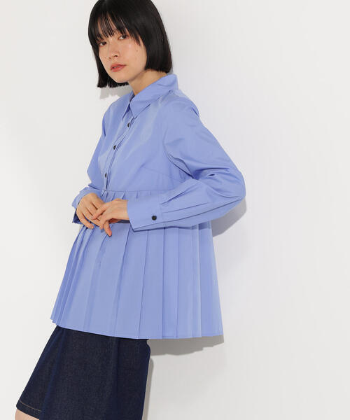 やや太めのカジュアルなプリーツが目を引くペプラムブラウス。ウエストまわりをふんわりカバーしつつ、スタイルアップも叶うシルエットです。一枚着るだけでコーディネートが華やぎ、キレイめにもカジュアルにも合うデザイン。ニットの裾からプリーツを見せるレイヤードスタイルも楽しめる、着回し力の高さも魅力です。<素材>程よいハリ感のブロード生地を使用しています。<詳細>仕様・前ボタン裏地・なし透け感・ややあり / 光沢・なし / 伸縮性・なし生地の厚さ・普通●取り扱いについては、商品についている品質表示でご確認ください。●撮影はサンプル商品で行っている為、仕様とサイズが異なる場合がございます。●スタジオ及び屋外で撮影した着用画像は、光の当たり具合やご覧のモニターによって色味が違って見える場合があります。予めご了承ください。●生産時期により色・素材・サイズ感など多少異なる場合がございます。予めご了承ください。〇返品・キャンセルについて・着用・洗濯後の返品・ご交換は致しかねます。・商品到着後、着用または使用前に商品を確認して頂きますようお願いいたします。≪お買い物をよりお楽しみいただくために!≫・「商品のお気に入り登録」再入荷通知や、ラストの通知、セール通知も受け取ることができます。・「ブランドのお気に入り登録」新商品や再入荷をはじめ、タイムセールやクーポンなどいち早くブランドお得な情報を受け取ることができます。