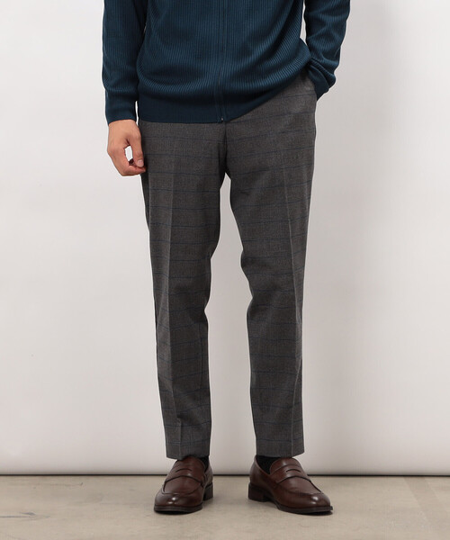 《デザイン》デザインは裾を細身にし、スッキリ見えるテーパードシルエットのパンツです。カジュアルはもちろん、ビジネスでも使える汎用性の高い上品なスラックスです。センタープレスを入れ、裾上げはルイス仕様(表に縫い目の出ない裾上げ)にしてすっきりと仕上げました。ウエストはゴムを使用したデザインでフィットした履き心地が得られます。また生地の程よいストレッチ性とゆとりを持たせていますので、とても動きやすく、快適に着用していただけます。表側のウールライクな見た目と裏面にも軽く起毛を施した暖かみのあるスラックスです。《素材》生地はポリエステル/レーヨン素材の両面にきめ細かい起毛加工を施していますので、表面はウールのような温かみのある表情がありつつ、裏面は着用時に暖かさがあります。また柔らかな風合いと程よいストレッチ性もこの生地の特長です。コーディネートのポイントになるトラッドテイストのチェック柄です。《取り扱い注意》洗濯機洗いは弱洗い、もしくは石油系ドライクリーニング。着用の際、毛羽の細かなもつれが絡み合い、ピリング(毛玉)が発生します。素材風合いの性質上避けられませんのでご了承ください。汗や雨等で濡れた時、強く擦られますと多少の色落ち、色移りする可能性がありますのでご注意下さい。強い日光(照明等)を長時間受けますと、変色の恐れがありますのでご注意下さい。《その他仕様》タック本数:ノータック裾上げについて:股下仕上げ済みウエストの後ろ部分はゴム仕様で体にフィットしやすい伸縮性があります。※ウエストサイズの表記は、ゴム仕様の為、最大値まで記載しております。……………………透け感:なし厚さ:ふつう伸縮性:あり光沢感:なし裏地:なし洗濯方法:洗濯機洗い可……………………