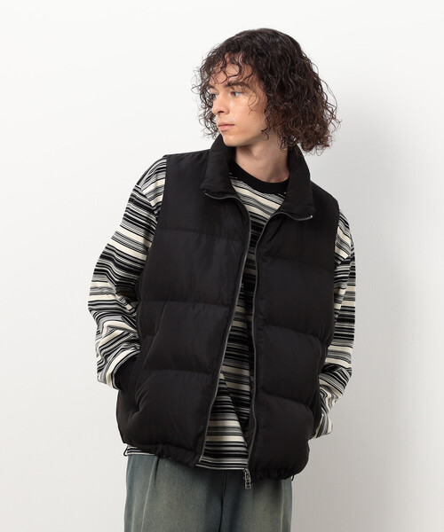 《デザイン》昨年限定展開で好評を得た中綿ベストをリニューアルして展開。ファイバー中綿を使用しているので、とても温かく保温性があります。通常の中綿よりもふんわりしているので、ダウンのような膨らみがあります。中綿は自宅でメンテナンスを行うことが可能なのでお手入れが簡単です。程良くゆったりとしたワイドシルエットで、裾のドローコードを絞ることでシルエットの変化をお楽しみいただけます。インナーを変えるだけで秋口から真冬手前、冬の終わりから春先とロングシーズン着まわすことができます。一着持っていると重宝すること間違いなしのアイテムです。《素材》ポリエステルタフタ / ファイバー中綿<ポリエステルタフタ>柔らかく滑らかで肌触りの良いポリエステル素材を使用しています。カジュアルにもきれいめにも合わせやすい程良い光沢感がポイントです。<中綿>ファイバー中綿は保温性があり軽くて柔らかく、ふんわりとした膨らみが特長です。透け感:無し厚さ:やや薄い伸縮性:無し光沢感:やや有り