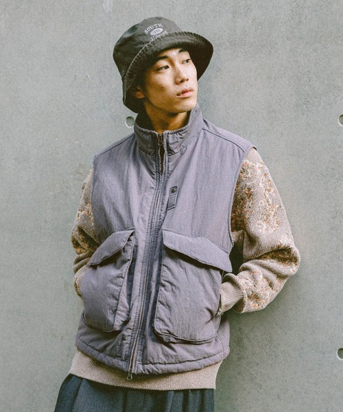 2025 Autumn 古着ライクな風合い漂う中綿ベスト【POINT】◆ブリーチ加工を施した古着ライクな風合い漂うスタンドカラーベスト。◆軽やかながら保温性の高い中綿を使用。程よい厚みで重ね着もしやすいです。◆ダブルジップやドローコードでシルエット変化が可能になり、着こなしの幅が広がります。◆アウトドアからタウンユースまで様々なシーンで着用いただけます。【STYLING】スウェットの上から羽織ってラフに。ボトムスはカーゴパンツを選んでアウトドアスタイルにまとめると◎▽合わせるならコレ!▽ 品名:ナイロンコットンオーバーカーゴパンツ品番:580072※屋外の光や照明の当たり具合で、実際の商品の色味とカラー別画像の色味に違いが発生する場合がございます。商品の色味はスタジオ撮影の詳細画像にてご確認ください。※商品の色や質感を出来るだけ忠実に再現するよう心掛けていますが、実物と若干異なる場合がございます。※取扱いアイテムは店舗により異なる場合がございます。