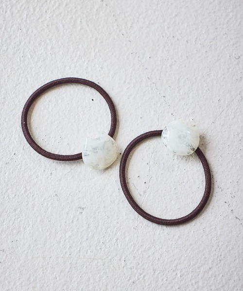 毎日のヘアアレンジのアクセントにねこのお顔モチーフ付きのヘアゴム 2本セット。ねこパーツのマーブル模様もおしゃれなポイント。さり気ないデザインなので、普段使いしやすいです。ーーーヘアゴム ねこーーー