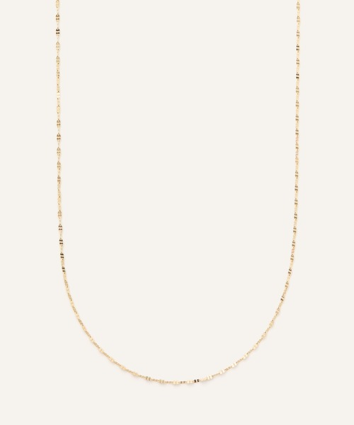 クローバーチェーンのネックレス。 チェーンは1コマずつが四葉のクローバーになっています。 クローバーは幸運の象徴とされるラッキーモチーフ。 たくさんのクローバーが重なったデザインで、光があたるたび煌めきます。 チェーンのみのネックレスはどんなスタイルにも合わせやすく、ワードローブに加えたいジュエリー。 約80cmのロングタイプは、1連でさらりと合わせるのはもちろん、2連で着用することもでき、アレンジをお楽しみいただけます。 地金/シンプル/石なし/垢抜け ※パッケージについては予告なく変更になる場合があります。