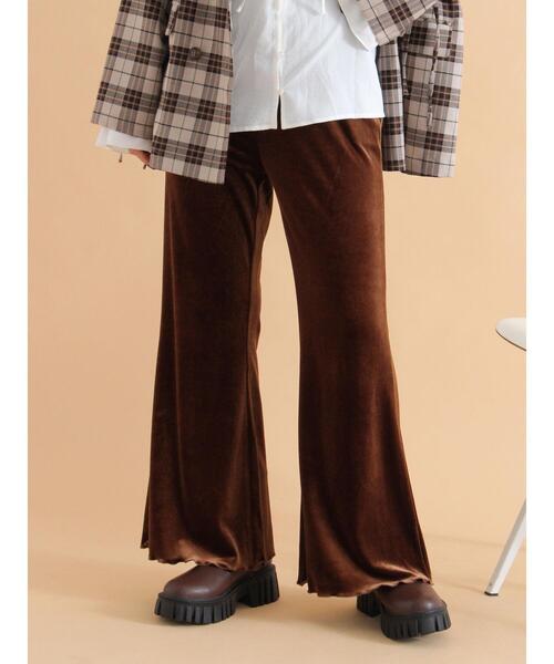 光沢感のあるベロア素材がシーズンムードを高めるパンツ。なだらかに広がるフレアシルエットで、美しい脚のラインを演出します。フィット感のあるウエストゴム仕様がポイント。お手持ちのカットソーと合わせたコーディネートがおすすめです。【その他採寸】 F ウエスト:[ゴム仕様]64cm ※商品画像は、撮影環境やお客様のご利用のPC・スマートフォンのモニター環境などにより実物と色味に差異がある場合がございます。★《お気に入り登録》でお得な情報をGET★① 商品ページ内のハートマークをクリック!② 以下通知が受け取れます!「再入荷」「ラスト1点」「特別セール」etc..\ブランド、ショップのお気に入りも是非!/