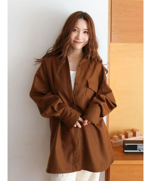 起毛感のある素材を使用したビッグサイジングシャツ■デザイン メンズライクでルーズなサイジングが特徴。胸元のポケットも大きめに施し女性が着た時に華奢見えする工夫も。シャツの羽織としてインナーにフィットシルエットのニットをレイヤードしたり、前を閉じてトップス感覚として着回しが効く1枚です。■生地感 粗野感のある起毛素材を使用しています。軽さもありチクチク感もなく着心地の良い素材感。暖かさもあるのでこのシーズンに重宝する1枚です。■サイズ感 ヒップが隠れるぐらいのオーバーサイジングの設定。スリーブやバストにもゆとりを持たせラフに着て頂けます。■スタイリング タックパンツと合わせてメンズライクなスタイリングがオススメ。マニッシュな印象で合わせてカジュアルアップした合わせがお洒落です。・・・・・・・・・・・・・・・・・・・・・・透け感:なし裏地:なし伸縮性:なし光沢感:なし生地の厚さ:普通・・・・・・・・・・・・・・・・・・・・・・※商品画像はサンプルのため、色味やサイズ、素材の混率等の仕様に変更がある場合がございます。予めご了承ください。※生地寄り画像を正規の商品の色味に近づけております。■商品のお気に入り登録再入荷通知やラスト1点、お得なプライスダウンの情報も受け取ることができます。ぜひご登録ください◎
