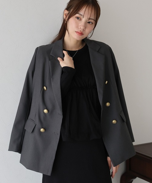 【2025AW】バックスリットデザインで周りと差が付くダブルジャケット◦POINTバックに大胆に施したスリットデザインがポイントのテーラードジャケット。ベーシックなデザインのジャケットにスリットをプラスして、後ろ姿にこなれ感を演出します。程よく緩いシルエットがオンオフ問わず様々なスタイリングにマッチし、デイリーにも合わせやすいアイテムです。ゆったりとし過ぎずジャスト過ぎない絶妙なサイズ感で、ヒップをカバーしてくれるやや長めの着丈が◎金ボタンのダブルジャケットできちんと感のあるので、きれいめなブラウスやボトムと合わせるとオフィスカジュアルにも。シーズンレスで取り入れやすい一着です。◦STYLING上品で大人なジャケットはカジュアルなアイテムとも好相性でオンオフどちらでも着回しやすいアイテム。ワンピースにさっと羽織ってレディにまとめたり、シンプルなロゴTシャツやデニムと合わせてもこなれた印象に◎きちんと感があるので、オフィスカジュアルから入学式・卒業式・入園式・卒園式などのセレモニーシーンまで幅広く使えるおすすめの1着です。◦DETAILダブルブレストジャケットゴールドボタンフラップポケット有り裏地有りM/Lサイズ◦FABRIC程よい厚みの微ストレッチツイル素材[ コーディネート ]ハートスタッズデニムパンツ 87816545(ZOZO)542426-8481(店舗)ウール混ベーシックハイネックニット88022094(ZOZO)542423-8511(店舗)[ 商品のお気に入り登録 ]完売カラーの再入荷通知や、値下げのお知らせ、ラスト1点の通知などが受け取ることができます。随時再入荷していますので、お気に入り登録して頂くと再入荷情報がGET出来ます。[ ブランドのお気に入り登録 ]新商品の発売や再入荷、タイムセールやクーポン発行のお知らせなどBLUEEASTのお得な情報を受け取ることができます。ぜひご登録ください♪※撮影環境により、モデル着用画像は実際の商品と色味が異なって見える場合がございます。また、PCやスマートフォンの環境により画面上と実物では多少色が異なって見える場合がございます。トルソー画像が実際の商品に一番近いお色となりますのでご確認ください。