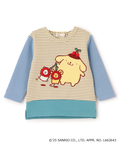 ポムポムプリンとさくらんぼを被ったおともだちが可愛いトレーナーです。 ポムポムプリンが頭に乗せているさくらんぼは立体的なデザイン。 ボーダー柄と配色の組み合わせで、ベイビーチアーらしいポップな雰囲気に仕上げました。 後ろ衿ぐりはゴム仕様なので、お着替えもラクラクです。 内側にお名前を記入できるタグつき。 【透け感】透けない 【生地の厚さ】普通 【伸縮性】あり 【裏地】なし 【ポケット】なし
