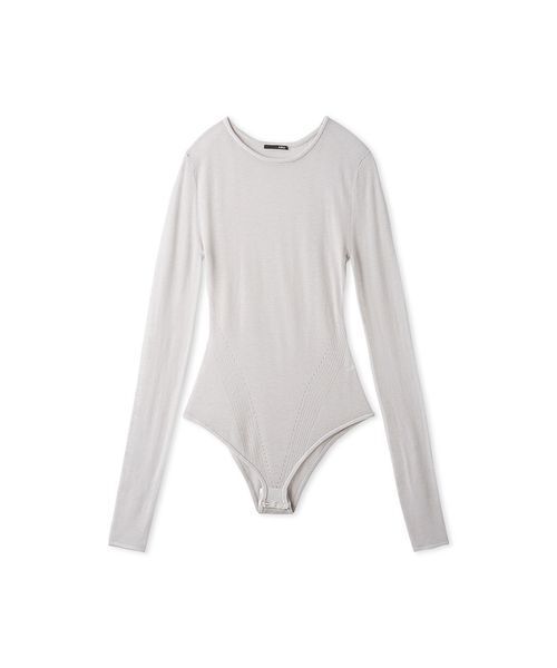 【Design/Styling】程よい透け感がムードなニットボディスーツ。シアー感がより際立つボディラインにこだわりました。ボディスーツ仕様にすることで、タックインスタイルでもウエストがもたつかずすっきりと着用できます。①透け感:あり②生地の厚さ:薄手③裏地:なし④伸縮性:あり◆気になるアイテムはお気に入り登録がおすすめです。お気に入り登録した商品はメニューの「♡」ボタンから、一覧表示することが出来ます。※照明の関係により、実際よりも色味が違って見える場合があります。またパソコン・スマートフォンなどの環境により、若干製品と画像のカラーが異なる場合もございます。予めご了承ください。商品の色味は、商品単品画像をご参照下さい。 ※商品画像はサンプルのため、色味やサイズ等の仕様に変更がある場合がございますので、予めご了承ください。