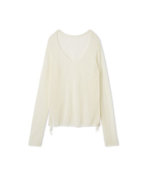 【Design/Styling】柔らかくふわっとした軽さが魅力のモヘア混のニットプルオーバー。ゆったりとしたワイズのデザインに、シアー感のある編地がニュアンスのある雰囲気を演出してくれます。脇から垂れるステッチ糸が、styling/らしいアクセントに。Vネックとクルーネック、どちらも楽しめる2WAY仕様です。【Fabric】非常に柔らかい超極細モヘアと、シルケットウールを組み合わせた素材。肌さわりが優しく、独特の上品な光沢感が特徴。①透け感:あり②生地の厚さ:普通③裏地:なし④伸縮性:あり◆気になるアイテムはお気に入り登録がおすすめです。お気に入り登録した商品はメニューの「♡」ボタンから、一覧表示することが出来ます。※照明の関係により、実際よりも色味が違って見える場合があります。またパソコン・スマートフォンなどの環境により、若干製品と画像のカラーが異なる場合もございます。予めご了承ください。商品の色味は、商品単品画像をご参照下さい。 ※商品画像はサンプルのため、色味やサイズ等の仕様に変更がある場合がございますので、予めご了承ください。