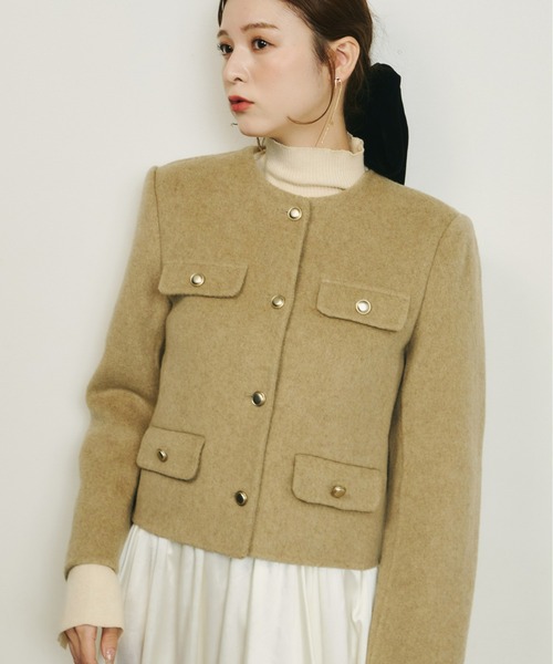 上品な存在感で、羽織るだけでスタイルアップフロントに並ぶゴールドボタンが上品にきらめくノーカラージャケット。程よくコンパクトな丈感で、スタイルアップが叶うシルエットです。肩まわりやラインはすっきり仕上げ、大人の女性らしい印象にみせてくれます。ふっくらとした厚みがありながらも、軽やかで着やすい仕立てに、柔らかさと適度なハリを兼ね備え、立体感のあるシルエットをキープしてくれます。ワンピースに羽織ればきれいめなお出かけスタイルに。かっちりオフィススタイルなコーデにも◎オンシーンからオフシーンまで万能に着こなせる一着です。■公式 Instagram【@olu.myself】新作やキャンペーン情報などを発信していますˎˊ˗ぜひお買い物の参考にしてください。