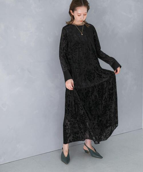 【フロッキープリントが印象的なオケージョンワンピース】 全面にフロッキープリントがあしらわれた、高級感のあるワンピース。部分的にサテンを使用しており、上品な光沢感でメリハリのあるデザインに仕上げました。ストレッチ性があり、リラクシーな着心地もポイント。すとんとしたシルエットにリボンやティアードで甘さをプラスしました。ほんのり透け感があり軽やかさもありつつ、秋らしく一枚で着映えする一着です。 【2025 Autumn/Winter】【25AW】 ※この商品のフロッキープリントは特殊加工です。永久的なものではなく、着用や洗濯を繰り返すとにより、ひび割れや脱落することがあります。着用時はプリント部分への過度な摩擦はお避けください。洗濯はお取り扱い表示をご確認ください。 総重量 : 約410g ※商品画像は、光の当たり具合やパソコンなどの閲覧環境により、実際の色味と異なって見える場合がございます。予めご了承ください。 ※商品の色味の目安は、商品単体の画像をご参照ください。 ▼お気に入り登録のおすすめ▼ お気に入り登録商品は、マイページにて現在の価格情報や在庫状況の確認が可能です。 お買い物リストの管理に是非ご利用ください。 素材感 透け感 : なし 伸縮性 : ややあり 裏地 : なし 光沢 : あり(刺繍, 袖口部分) ポケット : なし FREE