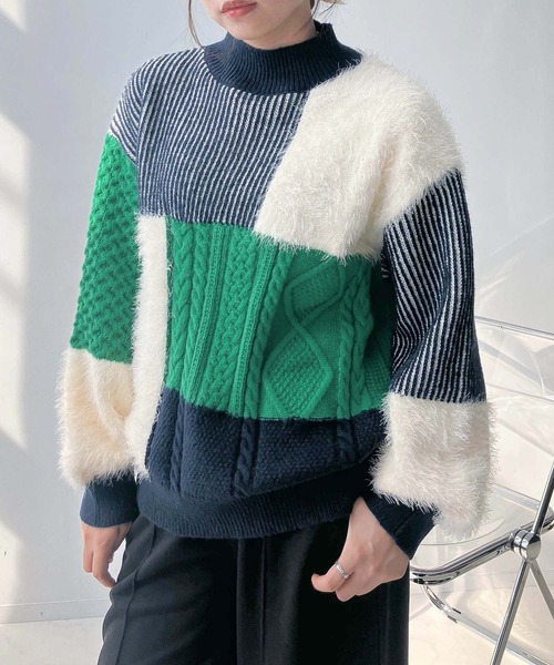 様々な素材を組み合わせたデザインが魅力のニットプルオーバーふわふわのシャギーやケーブル編み、ジャガード編みなど、豊かな表情を持つ編地を贅沢に組み合わせた高見えニット。異なるテクスチャーが重なり合い、1枚で奥行きのあるスタイルに仕上がります。ゆったりシルエットで着心地抜群!!お尻が隠れる長さなのも嬉しいポイント♪デニムなどシンプルなボトムと合わせるだけで着映える主役級アイテムです◎▼商品について・画像の商品はサンプルとなります。実際の商品と色味、仕様、加工、サイズ、素材等が若干異なる場合がございます。・サイト上のカラー名と、お届け商品に記載されているカラー名が異なる場合がございます。・商品の色味は、撮影場所や光のあたり具合などにより色味が違って見える場合がございます 。また、お客様のお使いのPCのモニター環境などにより色味が違って見える場合がございます。予めご了承の上ご注文下さい。▼お取り扱いについて・着用またはお取り扱いの際は、アテンションタグや洗濯ネームを必ずご確認ください。▼返品・キャンセルについて・着用、洗濯後の返品は致しかねます。・商品到着後、着用前に商品を確認して頂きますようお願い致します。♪商品のお気に入り登録お気に入り登録した商品は、ラスト1点になった時、完売商品の再入荷、セールになった時にお知らせします。♪ブランドのお気に入り登録新商品の発売、再入荷、セール情報など、ブランドのお得な情報を受け取ることができます。