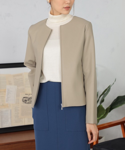 カジュアルに着まわしやすいフェイクレザーのノーカラージャケット【機能/素材】滑らかで柔らかな風合いの生地を使用。【デザイン】すっきりと見えるシングルジップのデザインを採用し、ハー ドになりやすいレザージャケットを女性らしくアレンジしました。【お勧めスタイリング】ニュアンスカラーのジャケットは柔らかな印象でデイリーに着こなしやすい一枚です。【GALLORIA /ギャロ―リア】 ベーシックだけじゃ物足りない、ほどよくトレンドを取り入れ シーンレスにきちんと見える。そんな願いを叶えてくれる、いまの空気感をまとった大人のデイリー服「GALLORIA」買いやすいプライスで、バリエーション豊富に揃うライフスタイルに寄り添うコレクションを展開します。◆Instagram:@galloria.sns公式Instagramでは最新情報を定期的に更新中!フォローしてお得な情報をゲット!■商品のお気に入り登録のおすすめ■完売カラーの再入荷通知、ラスト1点、お得なクーポンやお値下をお知らせします。■ブランドのお気に入り登録のおすすめ■新商品や再入荷のお知らせ等、ブランドのお得なクーポンやお値下をお知らせします。