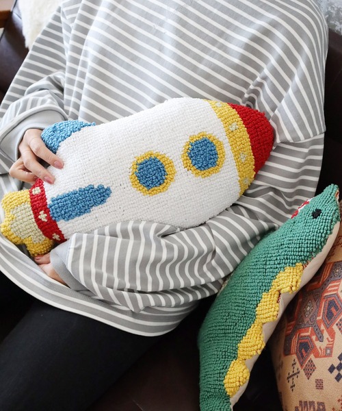 抱きしめたくなる可愛さ!お部屋が楽しくなるダイカットクッションお部屋にユニークな存在感をプラスしてくれる、ダイカットモチーフクッション。恐竜とロケット、思わず抱きしめたくなるふわもこ素材とカラフルなデザインで、インテリアのアクセントにもぴったり。ソファやベッドに置くだけで、遊び心あふれるリラックス空間を演出してくれます。プレゼントにもおすすめのアイテムです。<お取り扱いについて>洗濯はお避け下さい。お手入れの際は、水で薄めた中性洗剤で拭いてください。摩擦(特に湿った状態)により色が移る場合があります。他の物との組み合わせにご注意ください。この製品は、直射日光等により退色する事がありますので、お取扱いにはご注意下さい。この製品は素材の性質上、表面の毛羽が絡み合いピリング(毛玉)が発生する恐れがあります。ピリングが出来てしまったら引っ張ろうとせず、小さなハサミで丁寧に取り除いて下さい。※屋外の光や照明の当たり具合で、実際の商品の色味とカラー別画像の色味に違いが発生する場合がございます。商品の色味はスタジオ撮影の詳細画像にてご確認ください。※商品の色や質感を出来るだけ忠実に再現するよう心掛けていますが、実物と若干異なる場合がございます。※取扱いアイテムは店舗により異なる場合がございます。