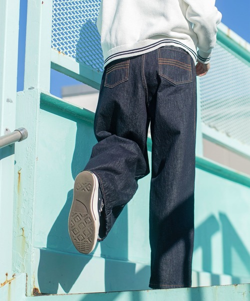 ワードローブに欠かせない、オーソドックスなワイドデニムパンツ。 程良い厚みで履きやすいレギュラーオンスデニムは、気兼ねなくデイリーに履き込める一本。ボールウォッシュとバイオ加工で柔らかいアタリを出したブルー、ブリーチ加工であえてムラ感をプラスしたサックスブルー、ワンウォッシュ加工で綺麗な濃色ながらも自然なアタリを表現したネイビーの展開です。履き込む程に馴染み、少しずつ色落ちの経年変化を楽しめます。 フロントにざっくりと入ったタックの立体感で美しいシルエット。ヒップの形が出にくいメンズライクなデザインが嬉しい。体型カバーが叶う、広すぎず程よくワイドな形です。 後ろポケットに並んだ3本のチェーンステッチは、PAR ICI定番アイコンのボーダーから着想を得ました。さりげない配色のマスタードとオレンジのステッチがどこか遊び心を感じるディテール。サイドラインに走らせた3本針ステッチでパッカリングを効かせたワークなアクセント。トップスを選ばず、カットソーやシャツの裾を入れたすっきりとした着こなしにも映えるボトムに仕上げました。丈夫な生地とベーシックなデザインは飽きることなく、シーズン問わず様々なコーディネートで活躍します。同素材でストレートパンツ(5001PT008252)もご用意しております。 -------------------- 透け感:なし 裏地:なし 伸縮性:なし 光沢感:なし ポケット:あり -------------------- 【素材の特性・お取り扱いの注意】 ・取り扱いの注意については取り扱い表示をよくご確認の上、着用をお願い致します。 ・インディゴ染料で染めています。洗えば洗う程、藍染め独特の鮮やかな色と風合いをお楽しみいただけます。 ・汗や雨などで濡れた場合、摩擦などにより色落ちし、他の衣料に移染することがありますのでご注意下さい。 ・他の衣料に色移りした場合はすぐに洗って下さい。時間が経つと取れにくくなります。 ・手洗いの際は必ず単独で洗濯して下さい。 ・綿素材の為、洗濯の際に多少縮みますので形を整えてから直射日光を避け、陰干しで自然乾燥させて下さい。乾燥機のご使用は絶対にお避け下さい。 ・直接日光や蛍光灯に長時間当てると変色する可能性がありますので、保管時はご注意下さい。また、色褪せ変色は経年変化によるものですのでご了承下さい。 ※撮影画像は、光の当たり具合やモニターの環境により色味が違って見える場合があります。あらかじめご了承下さい。 ※後ろ側に付いているブランドタグは切り離して履いていただけます。