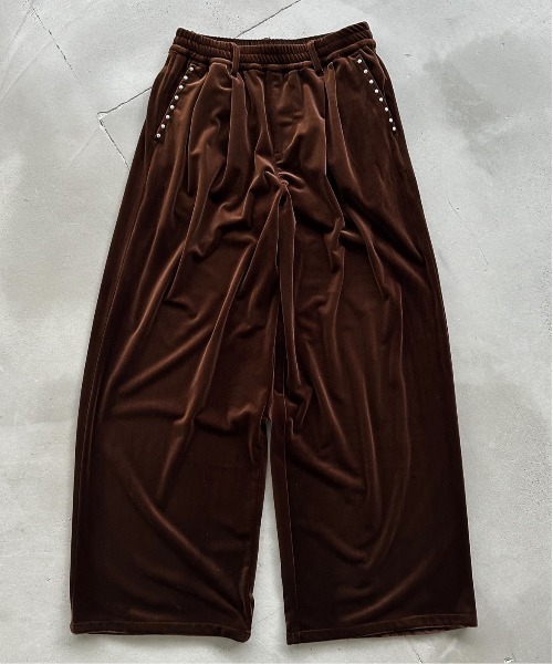 ------------------------------------------------------【Perushu/ ペルーシュ】毎週(木)に新作をリリース新作情報はInstagram、TIKTOK公式アカウントからチェック!↓【@perushu_official】------------------------------------------------------ベロア特有の光沢感と滑らかな肌触りが魅力のベロアスタッズワイドパンツ。リラックス感のあるワイドシルエットに、サイドポケットとバックポケットへ施したメタルスタッズがアクセントとなり、シンプルながら存在感ある一本に仕上がっています。ウエストはゴム+ベルトループ仕様で、快適な穿き心地とスタイリングの幅を両立。秋冬シーズンに映える深みのあるカラーバリエーション(バーガンディ・ブラック・ブラウン)をラインナップし、ストリートからモードまで幅広いコーディネートに対応します。ナップサックなどのカジュアルなアイテムからヘンリーネック、ジップパーカー、ダックジャケット、ニットポロなどテイストレスで合わせていただけます。プレゼントやデートにも◎年末年始のお出かけにもぴったり!ーーーーーーーーーーーーーーーー透け感:なし裏地:なし伸縮性:なし光沢感:なし生地の厚さ:普通ーーーーーーーーーーーーーーーー-推奨サイズ-S…~165cmM…~169cmL…170 cm~-Perushuブランドコンセプト-韓国ストリートからインスパイアされたWEB限定ブランド!アート、レトロ、ユニーク、トレンドなどをテーマにグラフィックアイテムを中心に展開しています!※サイト上のカラー名と、お届け商品に記載されているカラー名が異なる場合がございます。※ご覧いただく環境により、実物と色味が異なって見える場合がございます。ご了承ください。【お買い物をよりお楽しみいただくために】▼商品のお気に入り登録(ハートマークをクリック)完売カラーの再入荷通知や、ラスト1点の通知、セールの通知も受けることができます。▼ブランドのお気に入り登録新商品や再入荷など、いち早くブランドのお得な情報を受け取ることができます。