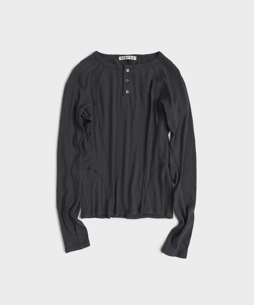 デザインインラインで展開されているDOUBLE LAYERED LONG SLEEVE HENLEY T SHIRT(NF252T06)をベースに、レイヤード仕様ではなく単体のヘンリーネックニットとして別注しました。襟元を広く取ったデザインで、Y2Kと称される2,000年代初頭のコレクションブランドのアーカイブピースのような雰囲気を纏います。コットンながらもニット織りのため、身頃が膨らまず、タイトにフィットするシルエットを生み出します。一見すると無地でシンプルな佇まいですが、NVRFRGTらしさ溢れる曲線のパネリングと、細畝による立体感によって物足りなさを克服した一着です。推奨サイズ身長~174cm:1身長175cm~:2身長178cm~:3素材・裏地:なし・伸縮性:あり・洗濯表記:洗濯機洗い可能メーカー品番:EXC252T03-NVRFRGT-“禅における不忘念(フモウネン)の精神とアイデンティティーの多様性”をコンセプトに掲げ、一過性のモノではなくワードローブに深く根差すモノ創りを目指す。独自のパターンカットを基に生み出される洗練性と実験的且つユニークなデザインのアプローチによるデイウェア。※店舗と在庫を共有しておりますので、受注確認メールが届いてもご注文のタイミングによりましては売り切れになる可能性がございますので、予めご了承ください。※商品の色味につきまして、撮影環境、お客様のお使いのPCのモニター環境により実際のカラーと画像の色味が違って見える場合が御座います。