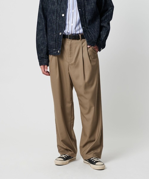 幅広いシーンで活躍。 程よくゆとりがあるシルエットが魅力のスラックス。 ■素材 サラッとした肌触りで、落ち感のある生地感が特徴。 軽量ながらも品のある素材のため、様々なシーンでお使いいただけます。 ■デザイン 腰回りにゆとりを持たせつつ、緩やかなテーパードが効いたワイドシルエット。 ツータックが立体感を生み、腰まわりをすっきりと見せてくれる美しいラインが魅力。 程よいルーズ感で、キレイめにもカジュアルにもマッチするパンツです。 ■コーディネート シンプルなトップスと合わせると、パンツの美しいシルエットが際立ちます。 また、ジャケットやブルゾンとの相性も良く、幅広いコーディネートにご使用いいただけます。 ============================ 裏地:なし 透け感:なし 伸縮:なし 光沢感:なし ============================ <info. BEAUTY&YOUTH(インフォ.ビューティーアンドユース)> BEAUTY&YOUTHから新たにリリースする「キャッチ―」「ベーシック」「ジャスト・ライト(ちょうどいい)」をテーマとしたオンライン限定の新レーベル。 トレンドのインフォメーション役として『ファッションの“今”を切り取ったアイテム』を『いますぐ欲しいプライス』で展開していきます。 男性・女性問わず、気負わず・こなれた洒落感がすぐに手に入る、そんなデイリーライフウェアをお届けします。 【マルチサイズとは】 豊富なサイズ展開のため、 「骨格ストレート/骨格ウェーブ/骨格ナチュラル」など様々な体型の方も、 自分に合った1枚が見つかる新しい洋服の買い方です。 「低身長~高身長」「やせ型~ぽっちゃり」など小さいサイズから大きいサイズまで、最大56サイズご用意しています。 定番アイテムから、ビッグシルエットなどのトレンドアイテムまで幅広く展開中! ※マルチサイズは、ZOZOTOWNのみでのお取り扱いになります。 ※サンプル品で撮影しているため、ボタンやファスナーなど一部の仕様が若干異なる場合がございます。 【注意事項】 この商品はご注文を受けてから生産を行う受注生産商品のため、発送までにお時間をいただきます。 カート投入後の画面にて発送日の目安が表示されますのでご確認ください。